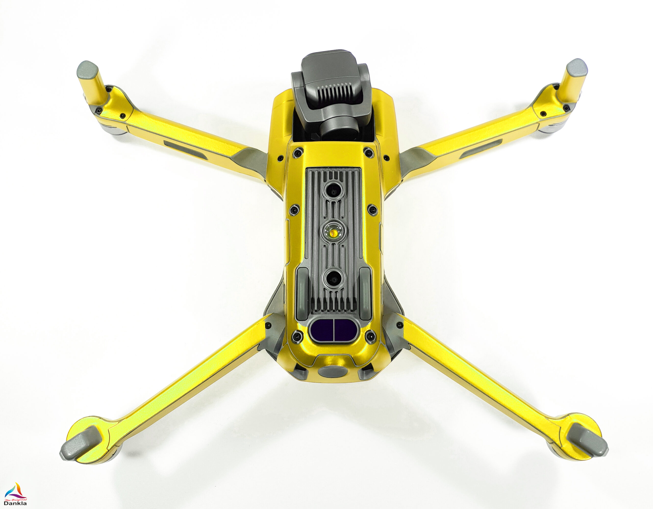 Die Drohne sollte vor der Anbringung der Folie unbedingt mit einem nicht aggressiven Reiniger gereinigt werden. (z.B. Glasreiniger)