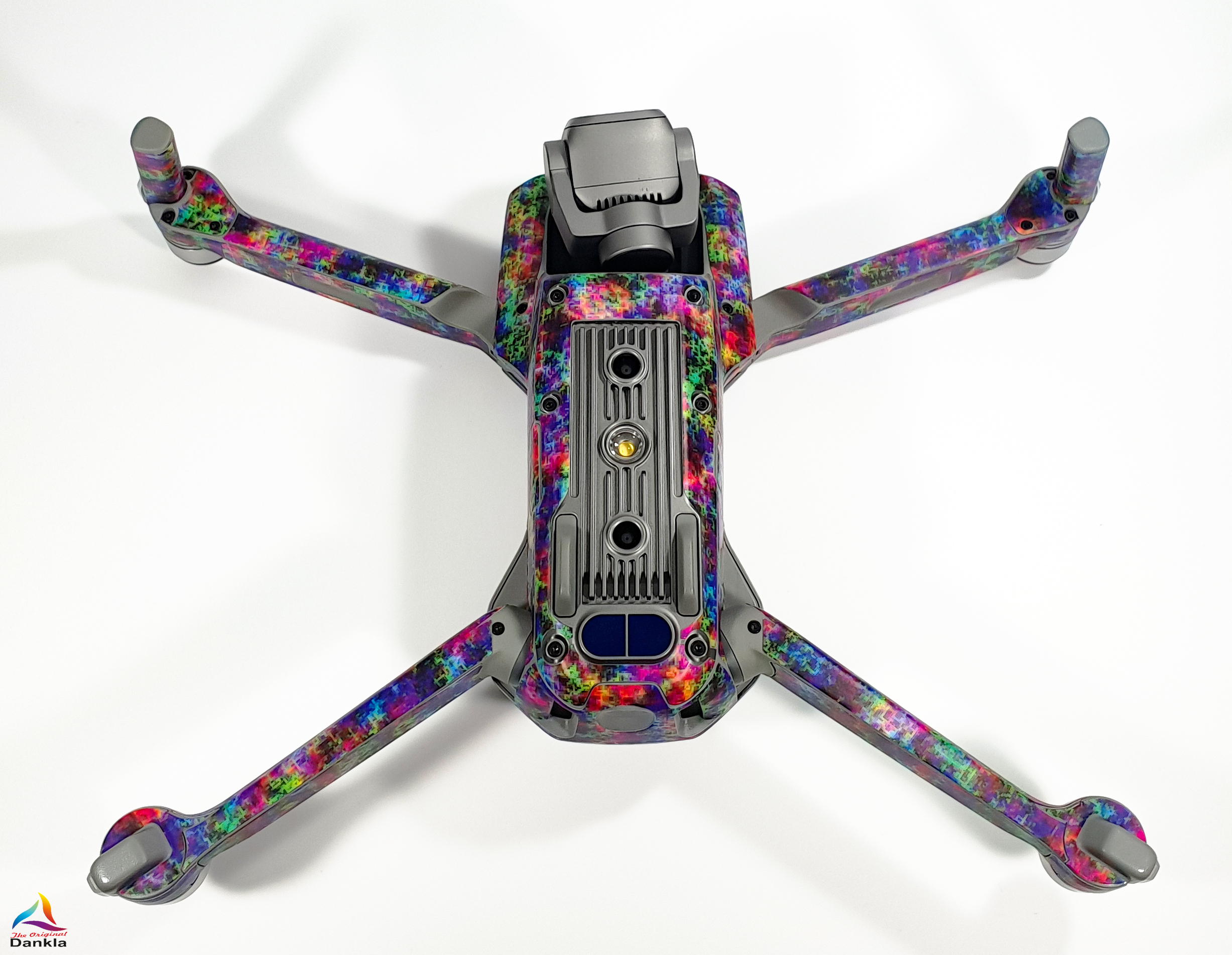 Die Drohne sollte vor der Anbringung der Folie unbedingt mit einem nicht aggressiven Reiniger gereinigt werden. (z.B. Glasreiniger)