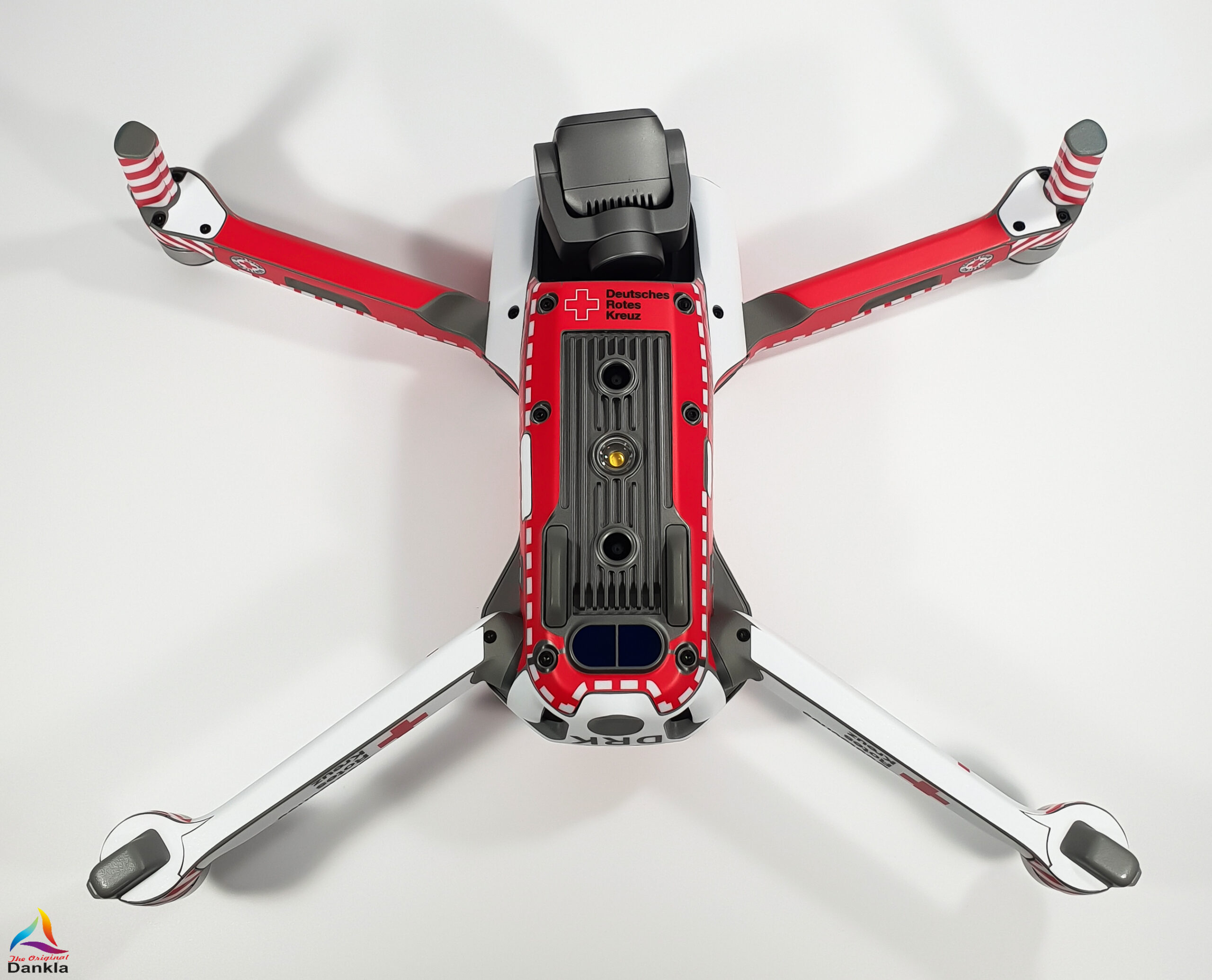 Die Drohne sollte vor der Anbringung der Folie unbedingt mit einem nicht aggressiven Reiniger gereinigt werden. (z.B. Glasreiniger)