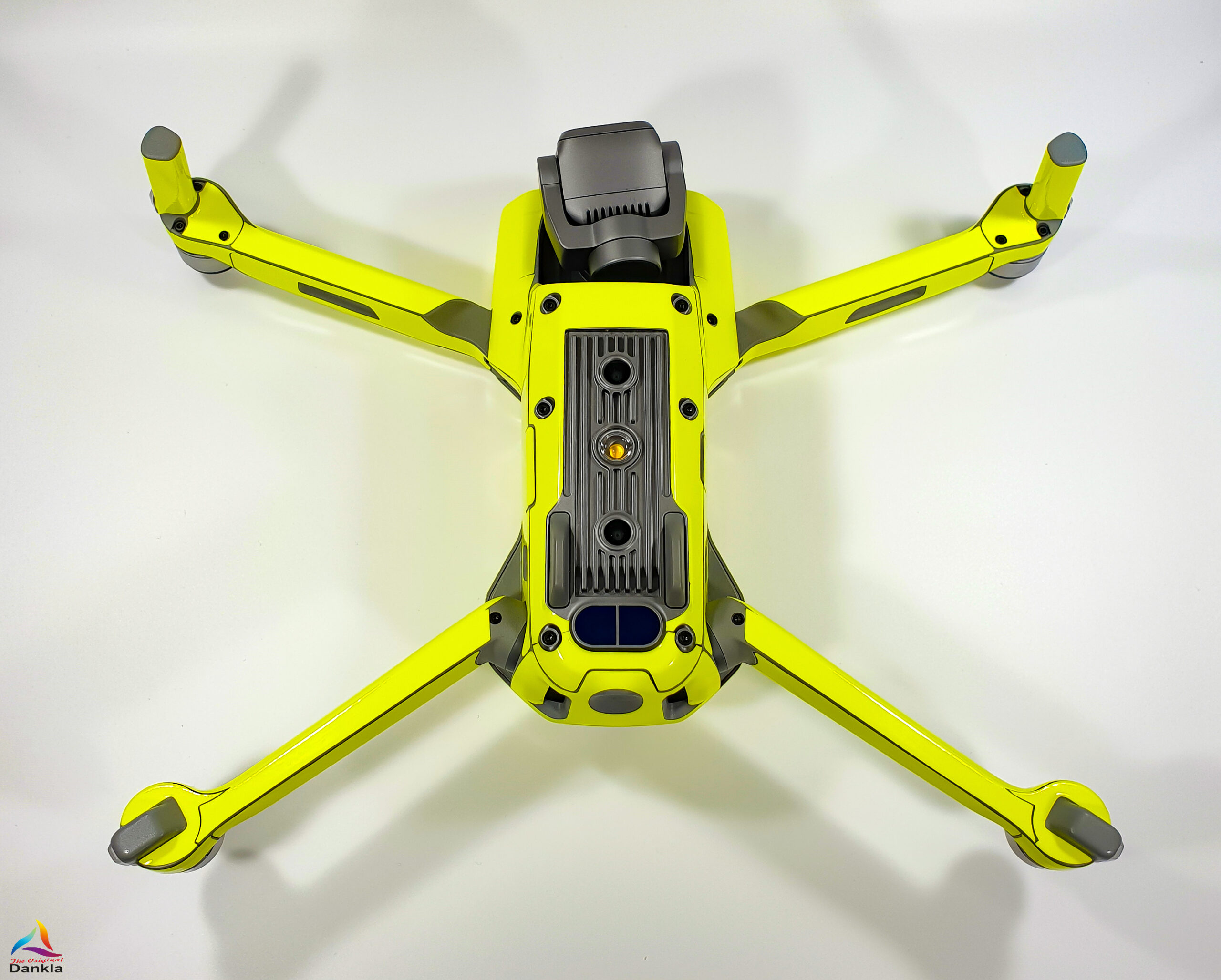 Die Drohne sollte vor der Anbringung der Folie unbedingt mit einem nicht aggressiven Reiniger gereinigt werden. (z.B. Glasreiniger)