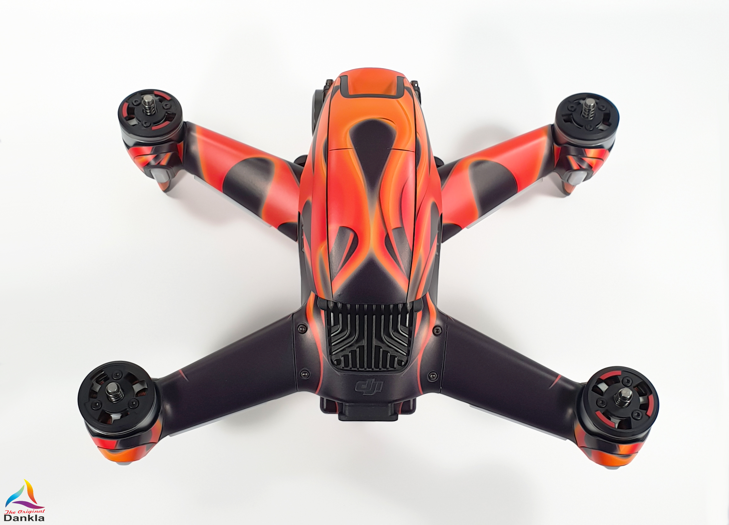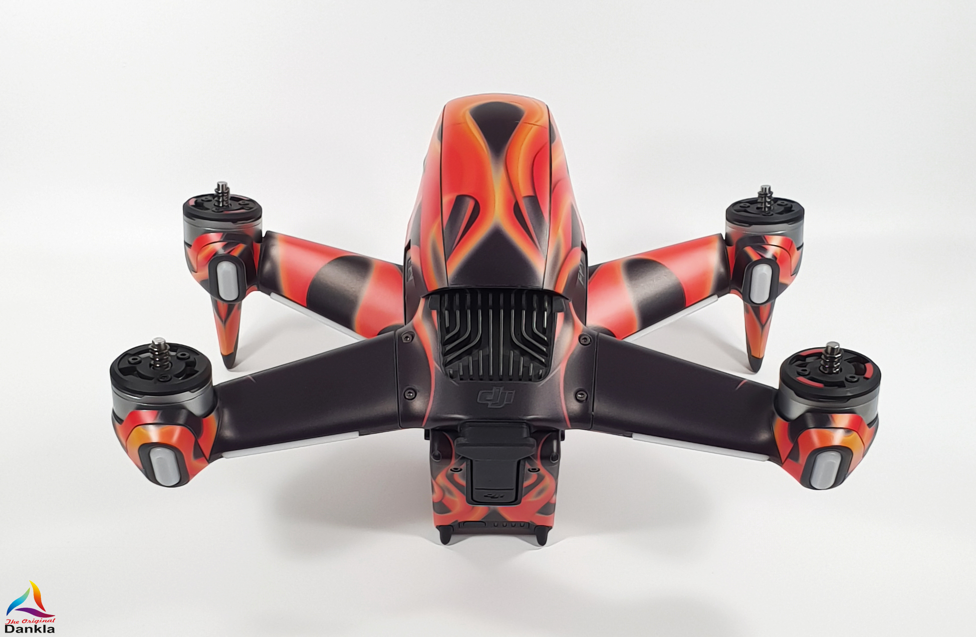 Die Drohne sollte vor der Anbringung der Folie unbedingt mit einem nicht aggressiven Reiniger gereinigt werden. (z.B. Glasreiniger)