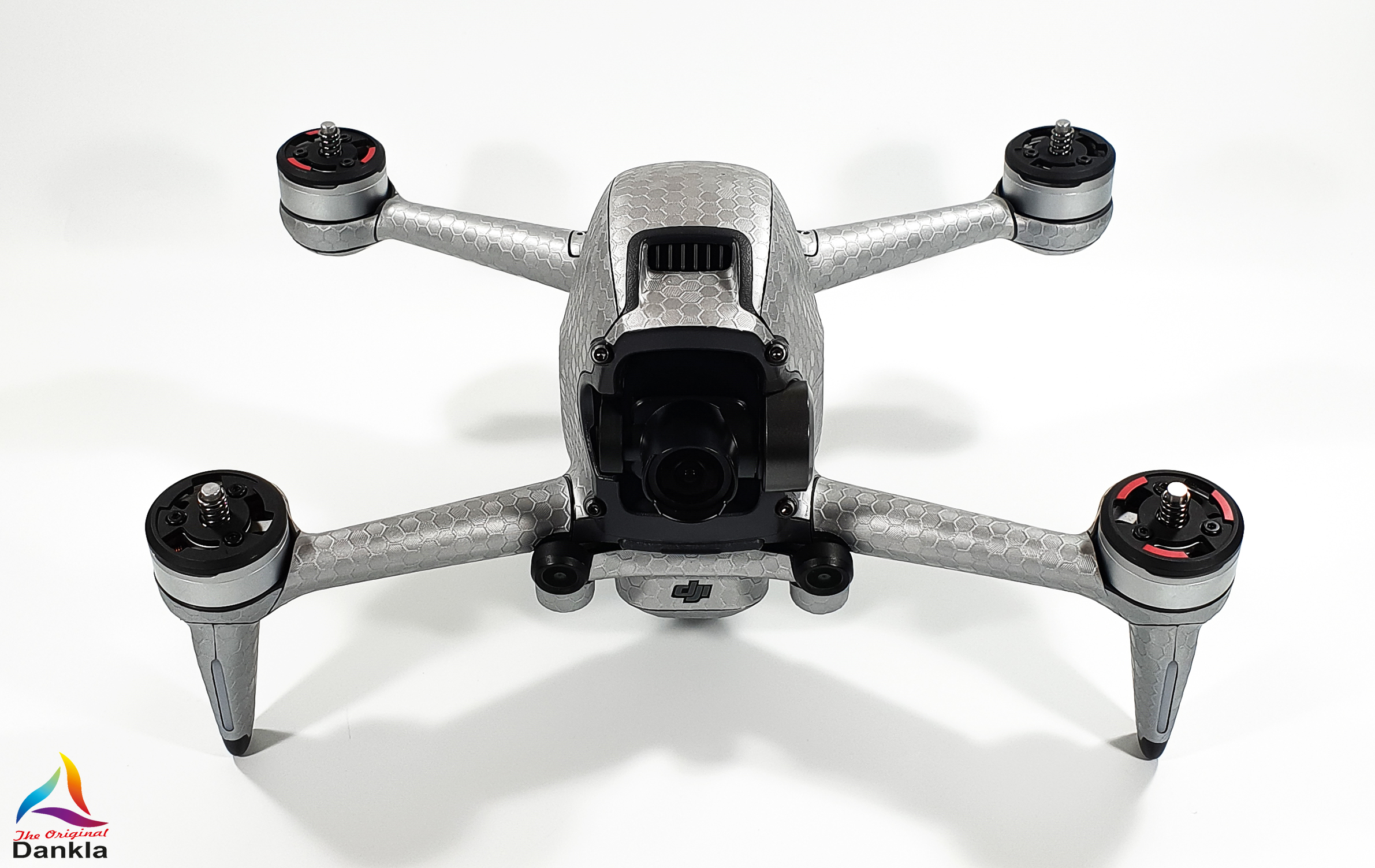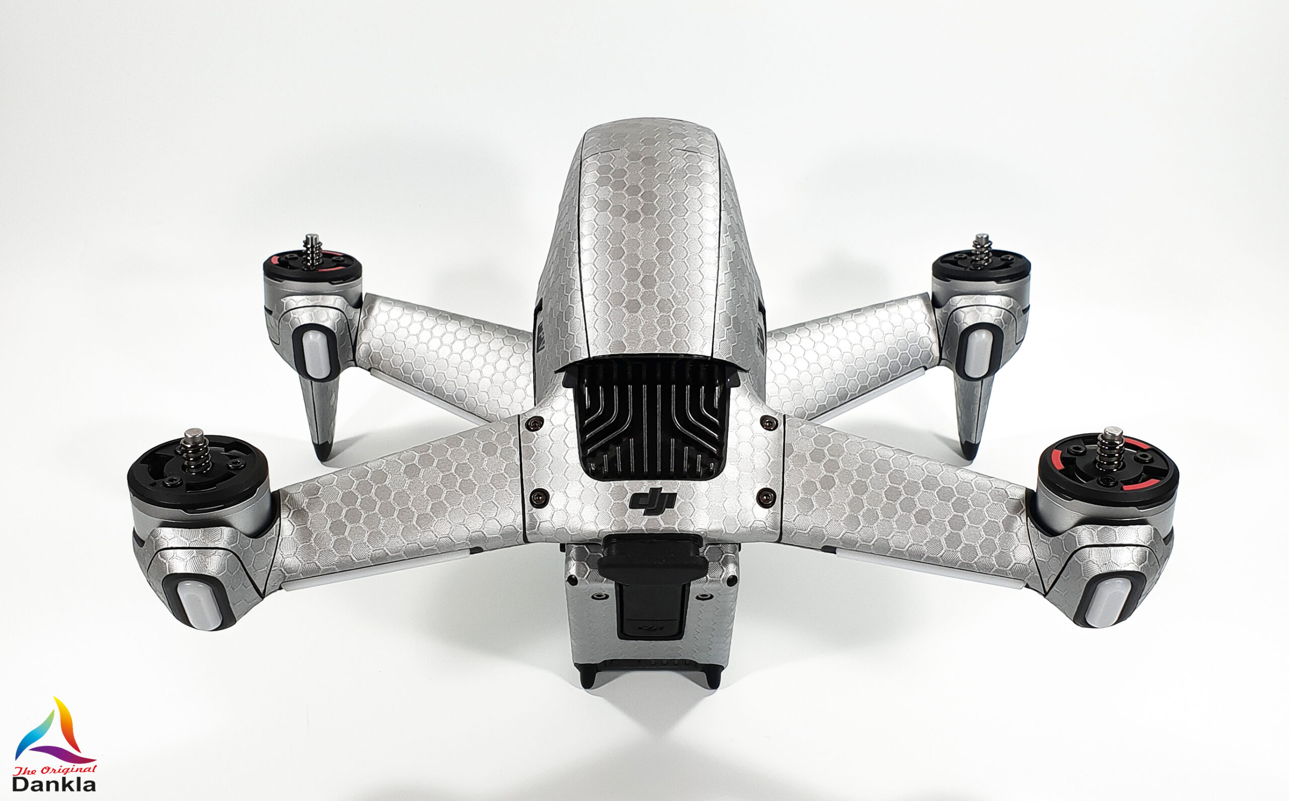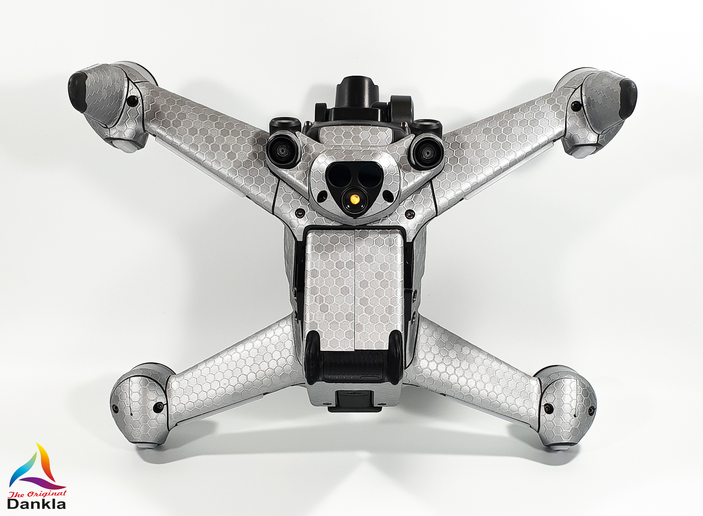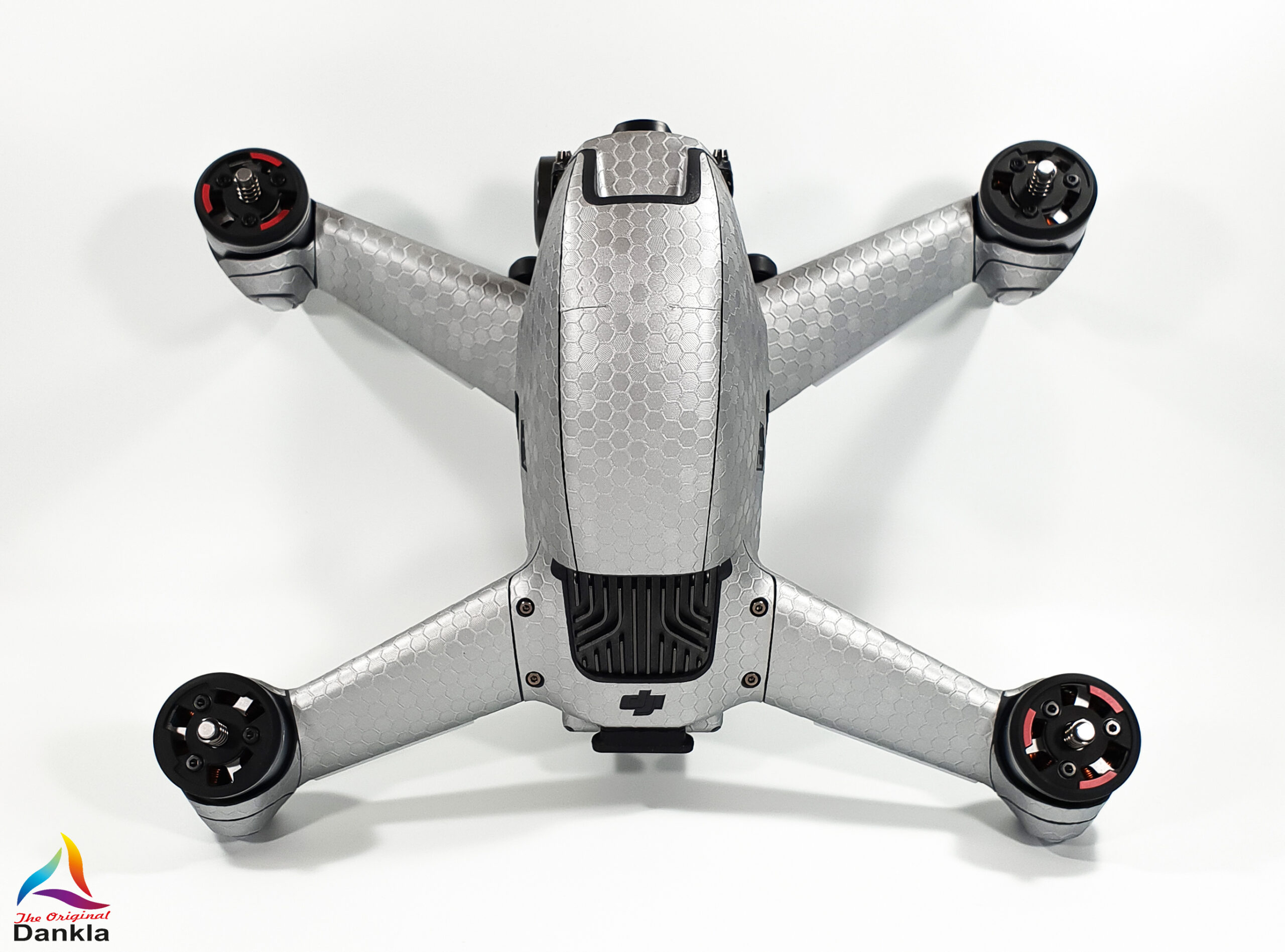 Die Drohne sollte vor der Anbringung der Folie unbedingt mit einem nicht aggressiven Reiniger gereinigt werden. (z.B. Glasreiniger)