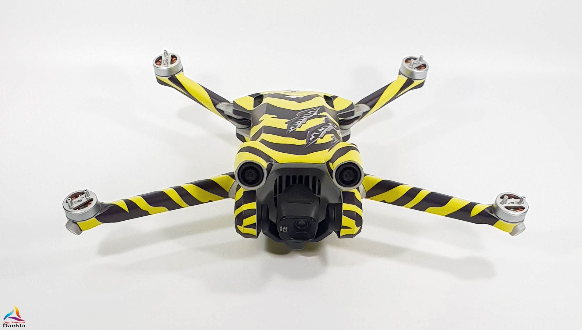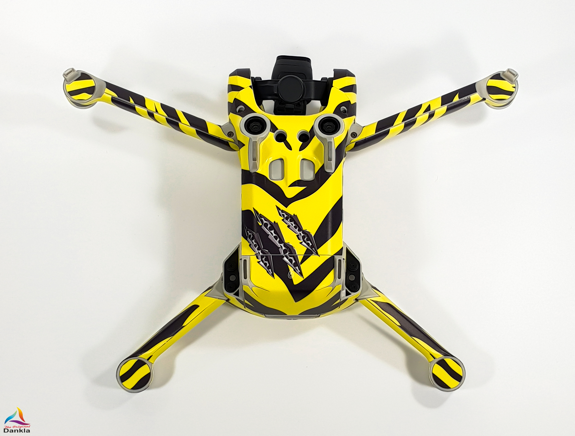 Die Drohne sollte vor der Anbringung der Folie unbedingt mit einem nicht aggressiven Reiniger gereinigt werden. (z.B. Glasreiniger)
