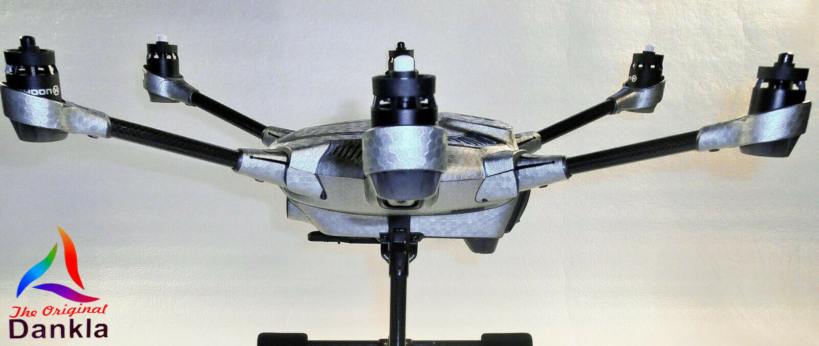 Die Drohne sollte vor der Anbringung der Folie unbedingt mit einem nicht aggressiven Reiniger gereinigt werden. (z.B. Glasreiniger)
