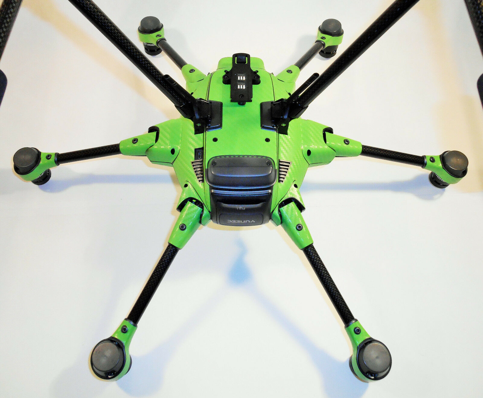 Die Drohne sollte vor der Anbringung der Folie unbedingt mit einem nicht aggressiven Reiniger gereinigt werden. (z.B. Glasreiniger)