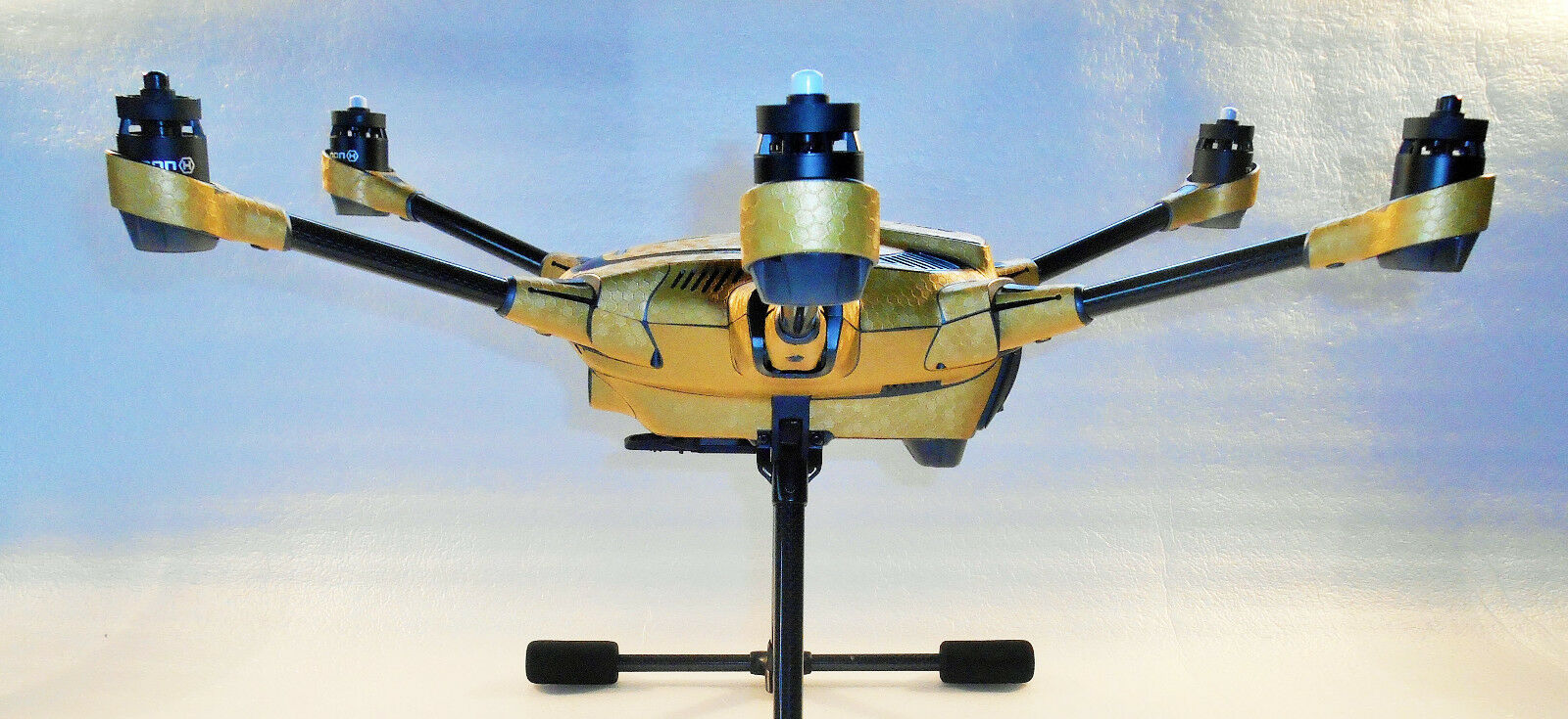 Die Drohne sollte vor der Anbringung der Folie unbedingt mit einem nicht aggressiven Reiniger gereinigt werden. (z.B. Glasreiniger)
