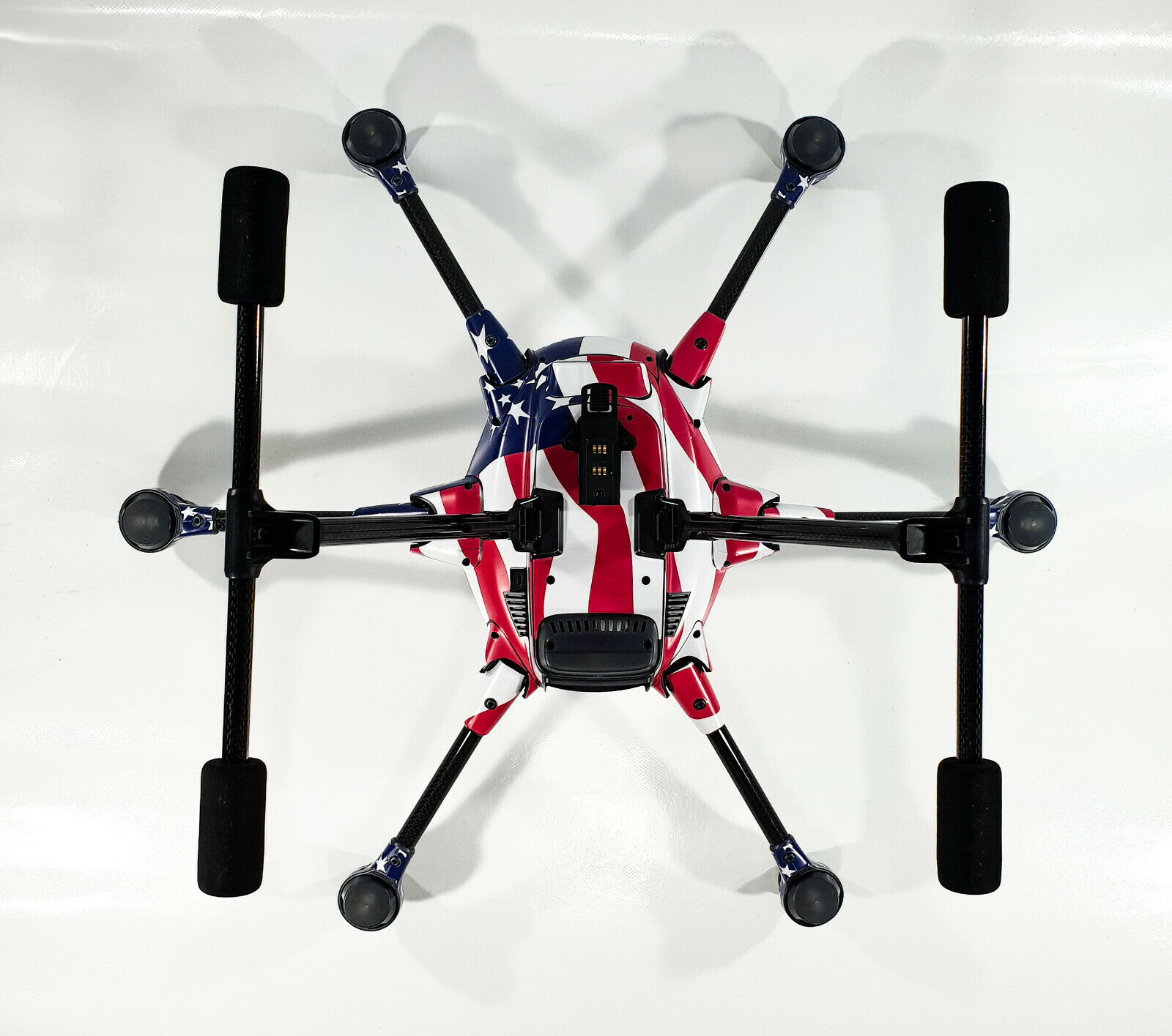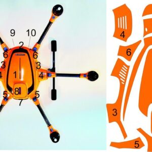 Die Drohne sollte vor der Anbringung der Folie unbedingt mit einem nicht aggressiven Reiniger gereinigt werden. (z.B. Glasreiniger)