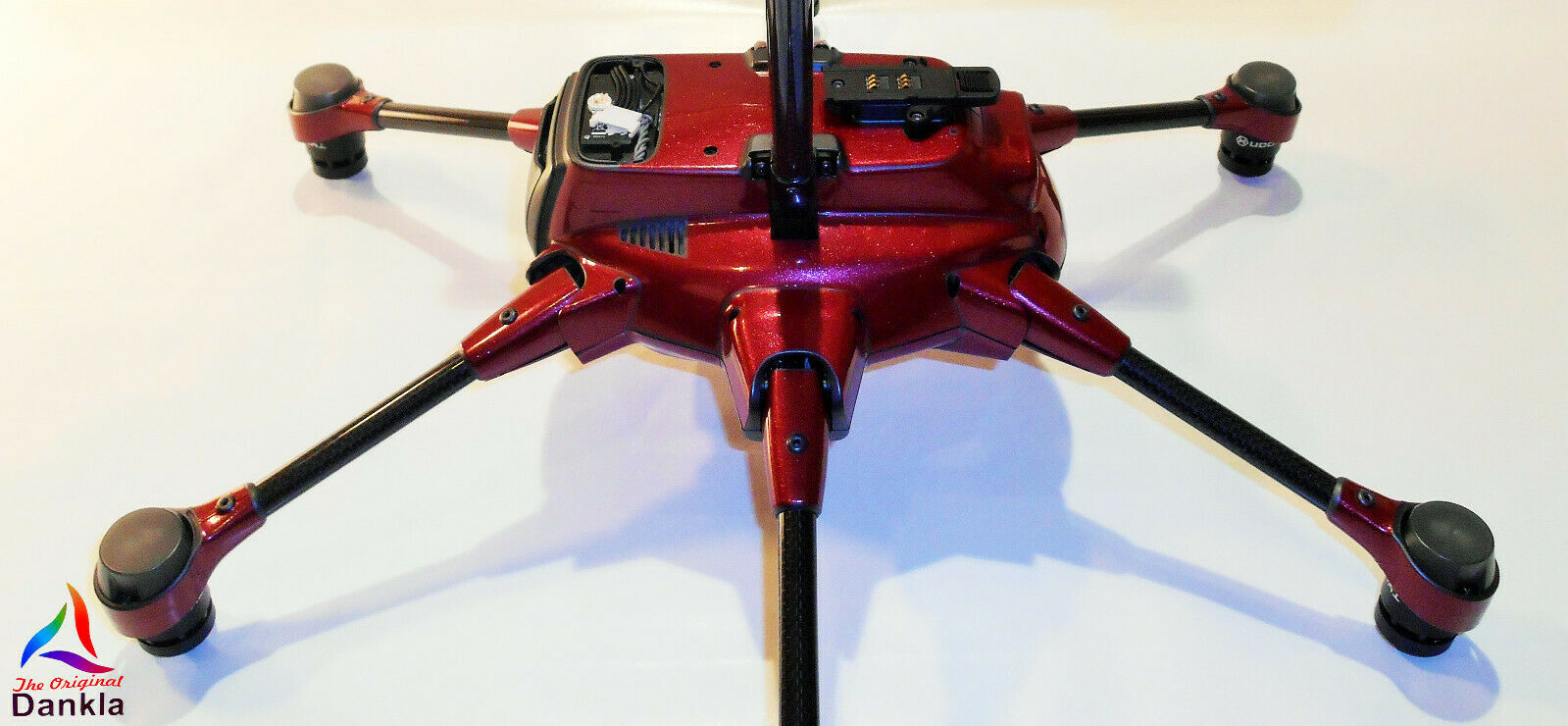 Die Drohne sollte vor der Anbringung der Folie unbedingt mit einem nicht aggressiven Reiniger gereinigt werden. (z.B. Glasreiniger)